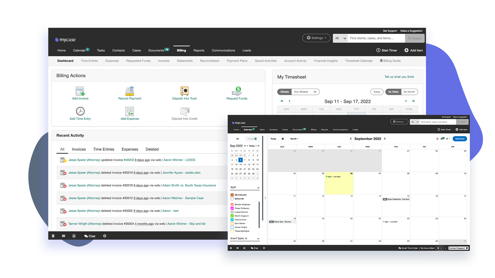 MyCase makes billing fast and simple. Generate professional invoices in seconds, track payments, and send reminders—all within one platform. Streamline your firm’s billing process and improve cash flow with automated features that reduce manual work and errors.